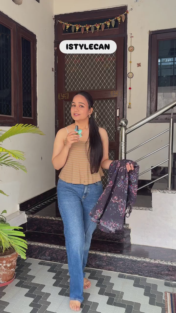 Black Striped Ribbed Sleeveless Single Shoulder Stretchable Slim Fit Crop Tank Top →