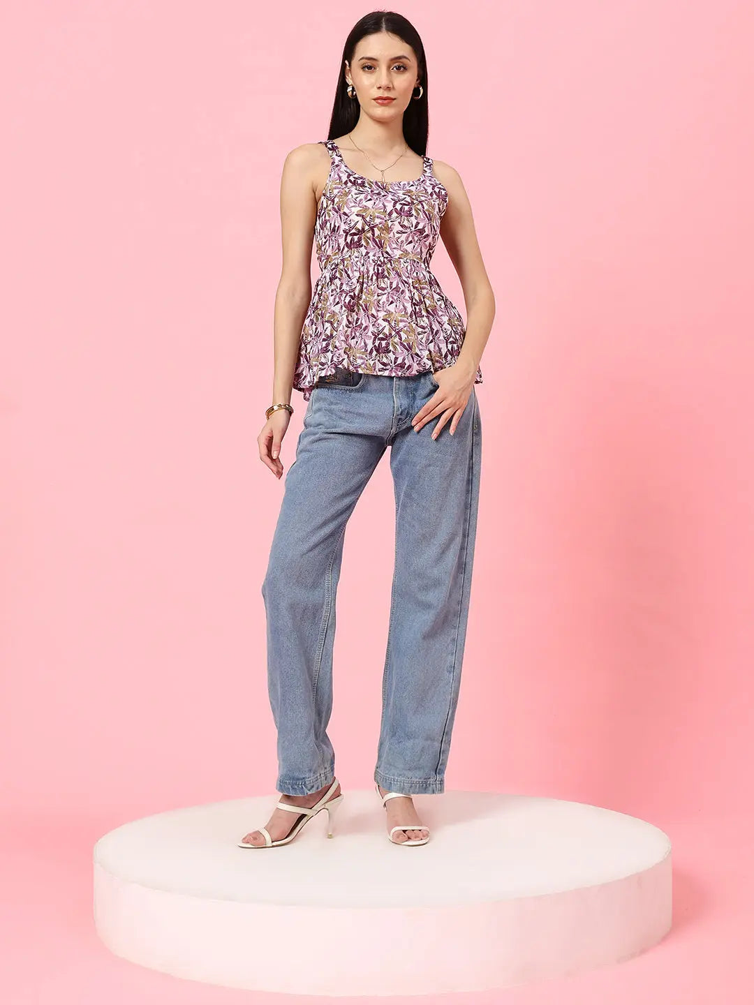 Istyle Can Onion Sweetheart Neck Shoulder Straps Sleeveless Regular Fit Top